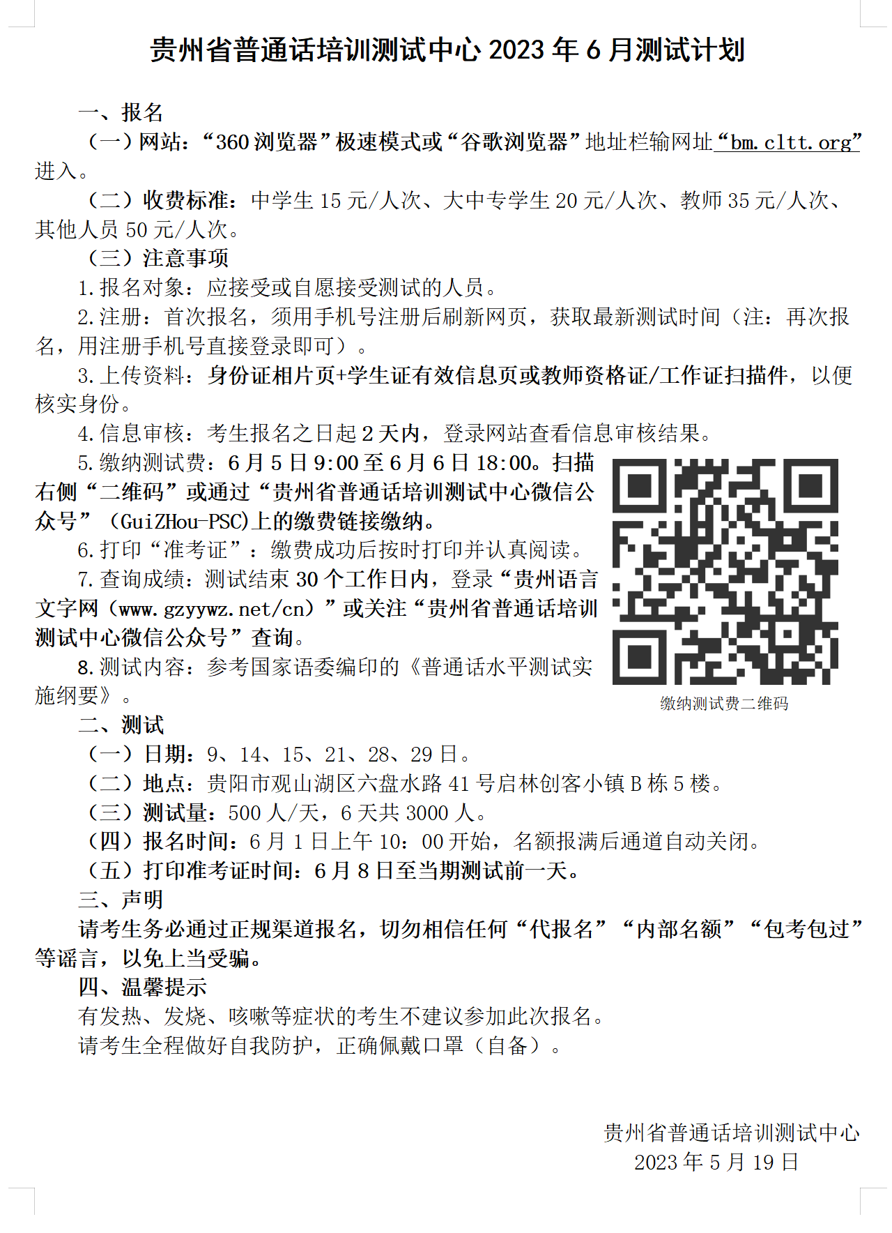 贵州省普通话培训测试中心2023年6月测试计划 -凯发k8国际首页登录