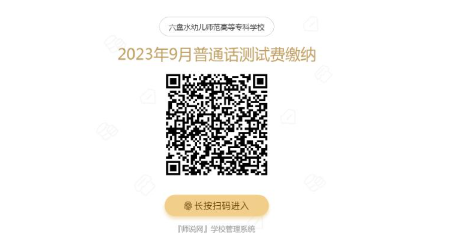 发表时间:2023-09-01 15:17来源:六盘水幼儿师范高等专科学校 一、报名 网站:“360浏览器”极速模式或“谷歌浏览器”地址栏输网址“bm.cltt.org”进入。 收费标准:中学生15元/人次、大中专学生20元/人次、教师35元/人次、其他人员50元/人次。 注意事项: 1.报名对象:本校师生,其他应接受或自愿接受测试的人员。 2.考生首次报名,须用手机号注册后刷新网页,获取最新测试时间。 报名时须上传以下资料: 学生:上传带有学生信息页面的学生证。 教师:上传教师证或工作证。 其他人员:身份证相片页。 未按照规定资料上传,审核不通过并不予以修改。 审核期间请及时关注审核结果,确认无误即可按要求缴纳测试费。 3.报名成功后,请在规定时间内打印“准考证”并认真阅读。 4.测试结束后30个工作日,登录“贵州语言文字网”(www.gzyywz.net/cn)或关注“贵州省普通话培训测试中心”微信公众号(guizhou-psc)查询成绩。 5.测试内容可参考国家语委编制印发的《普通话水平测试实施纲要》。 二、测试 1.日期:2023年9月16日、17日,考试当天报到截止时间以准考证上通知为准。 2.地点:六盘水市水城区以朵街道住武社区以朵大道8号六盘水幼儿师范高等专科学校实训楼3楼。 3.测试量:1100人。 4.报名时间:2023年9月1日至9月10日,名额报满后通道自动关闭。 5.缴费时间:2023年9月11日至9月15日(若考生未在规定时间内缴费,可自行打印准考证,并在测试当天现场缴费参加测试) 6.打印准考证时间:2023年9月14日至考试前一天。 7.缴费方式:考生报名审核通过后,在规定缴费时间内使用微信扫描下方二维码,输入身份证号核对缴费信息后进行缴费。